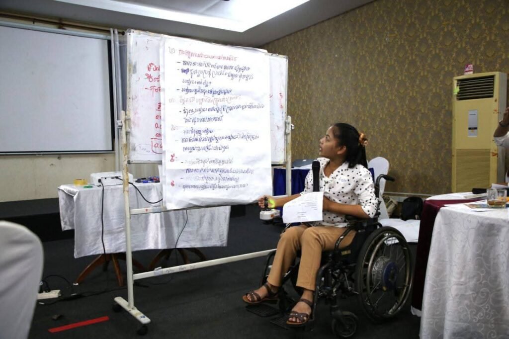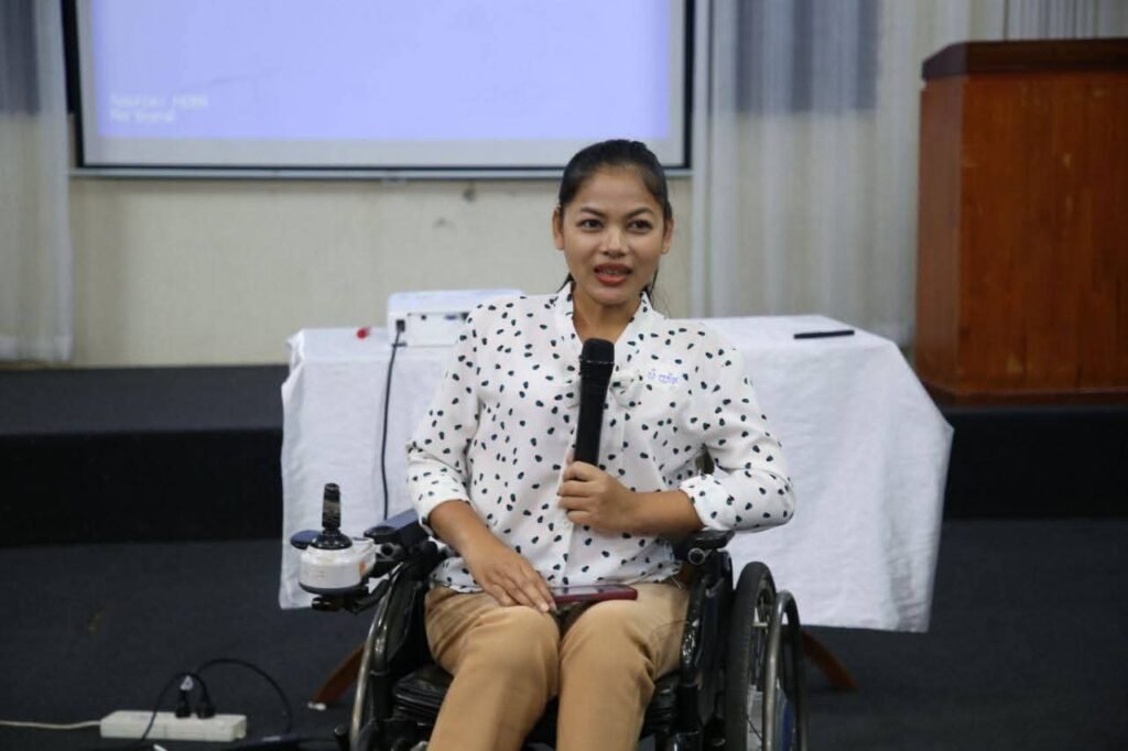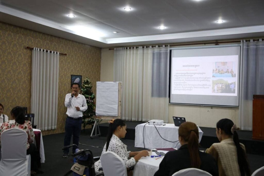 On December 15, 2025, Ms. Som Yat, who is in charge of Administration and Finance at Phnom Penh Center for Independent Living (PPCIL), participated in the “2025 Annual Reflection Meeting for Sen Sok District and Ta Khmav City”. The meeting was organized by the Advocacy and Policy Institute (API) and held at Eden Park Restaurant.